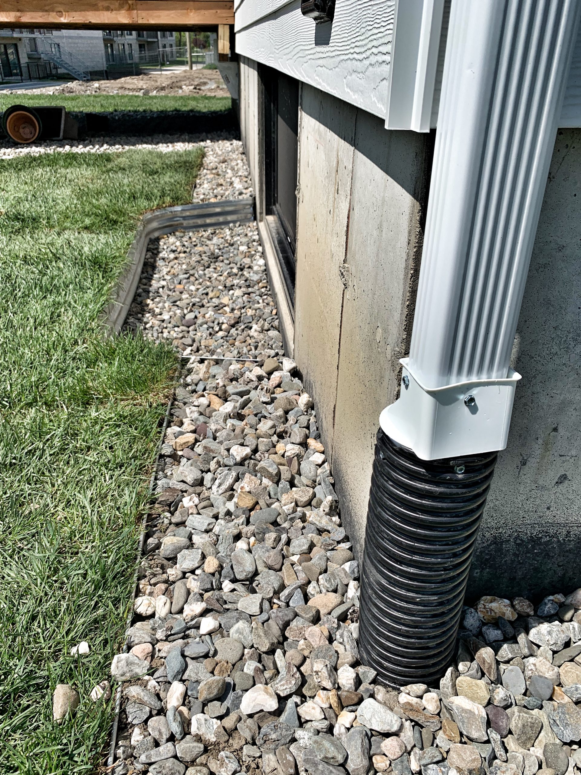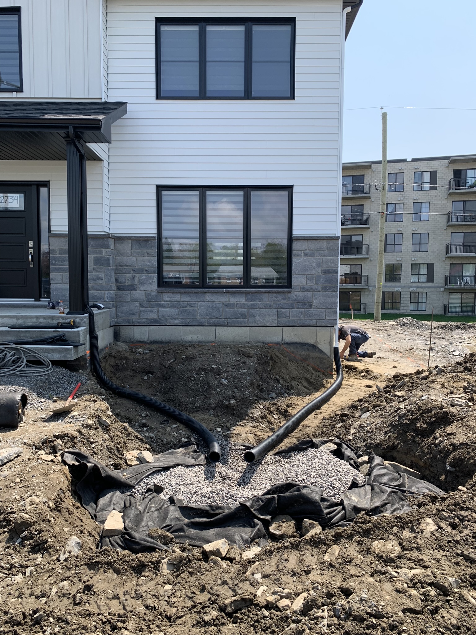 Excaver des puits secs pour contenir les eaux des gouttières. Les puits secs sont conçus pour éloigner les eaux de la fondation et protéger le béton de la fondation de l’humidité.